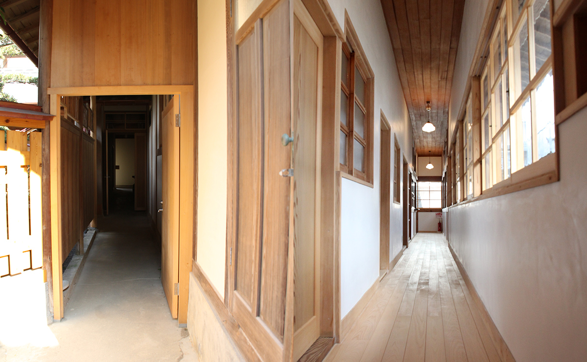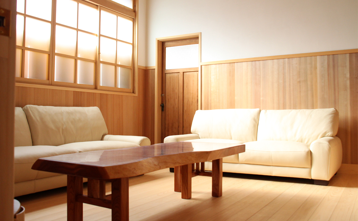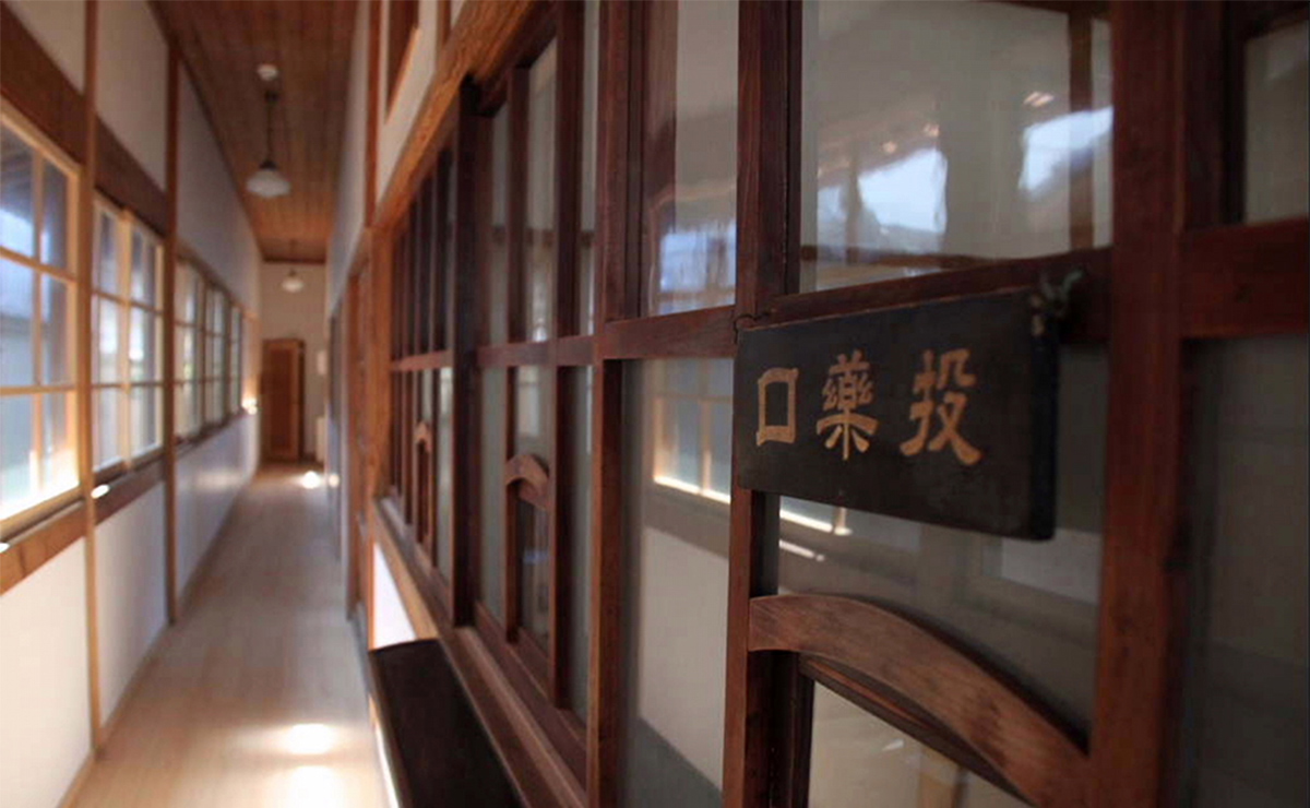 建築当時、玄関から入ると、受付と調剤室があり、部屋の一角に三畳程度の畳を敷き、待合室として使用していました。
