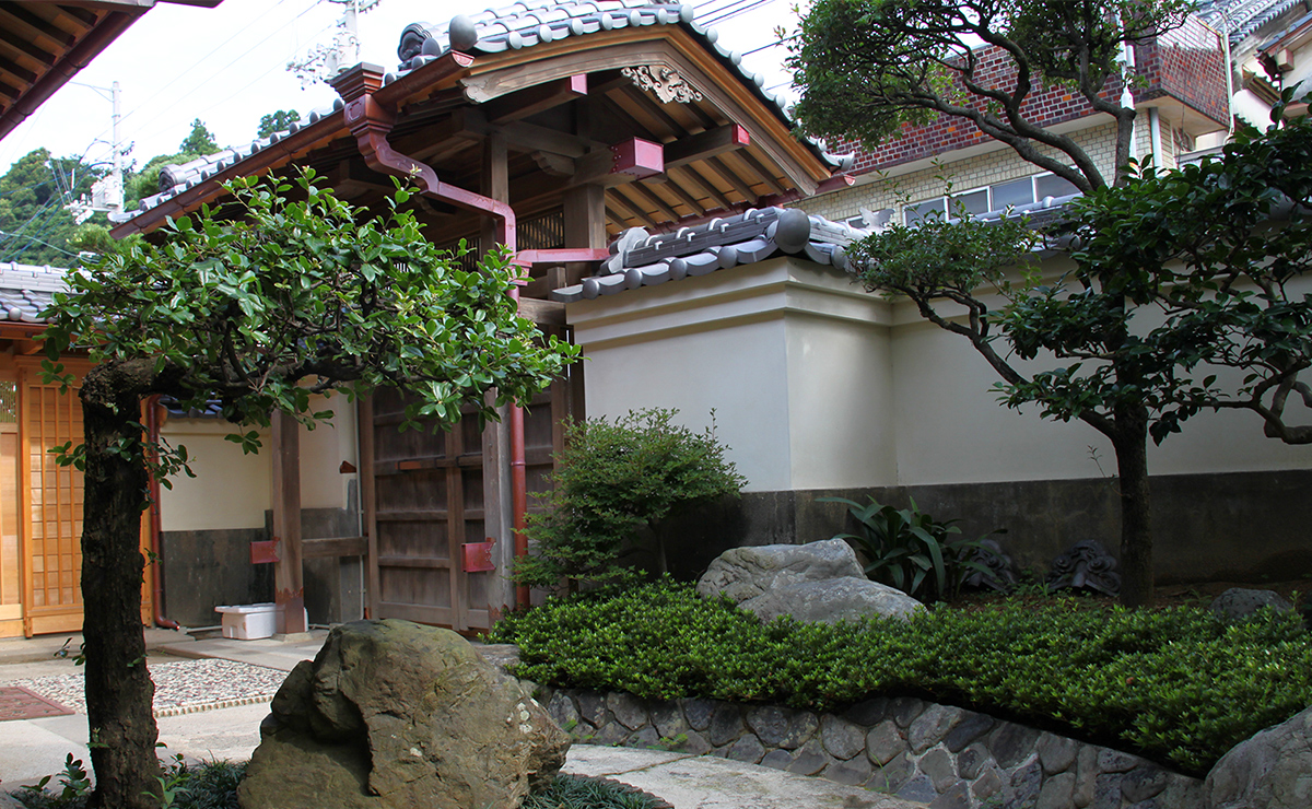建物は、入母家造・平屋建・瓦葺で、8室からなっています。 隈は、石組の上に土佐漆喰の土塀が約17mに渡って廻らされ、また、建物にも多くの水切りなどが施されています。士佐漆喰は高知で古くから使われてきた壁素材のひとっで、耐熱性、耐久性に優れ、水にも強く、きめの細やかな士佐漆喰でできた壁は、台風の通り道である高知県にとても適した墜素材です。 門は、 「表門」、 「東門」、 「 中門」が設けられています。表門は、ケヤキの1枚板を使用し、建築当時は、「表門だけで家l軒が建つ」と言われたそうです。